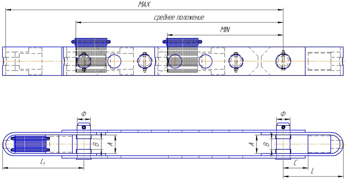 Ф | A | B | C | L | L1 | MIN | MAX | Среднее положение | ||||